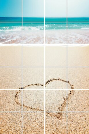 Prachtige foto van een hartje n het zand. Erg leuk op de tegels in je badkamer, toilet of keuken!